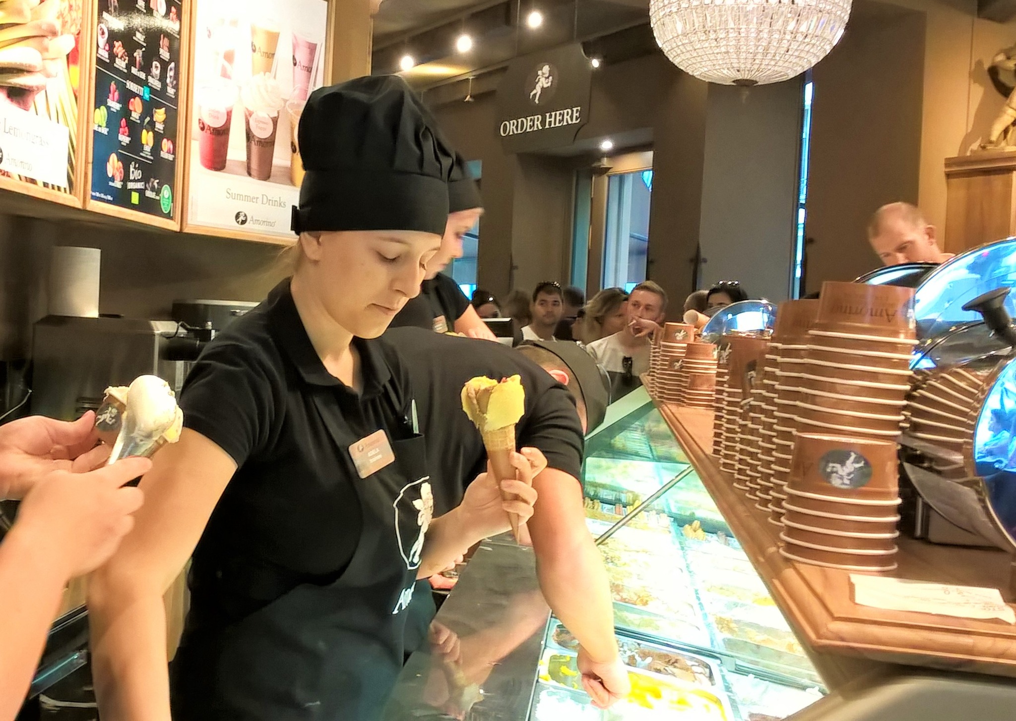 濃厚なアイスで、素材の味がそのままアイスに凝縮した感じです。我々が行った日は各国の人々が並び、すごい行列でした。列が長くて、ターンしてましたもん。