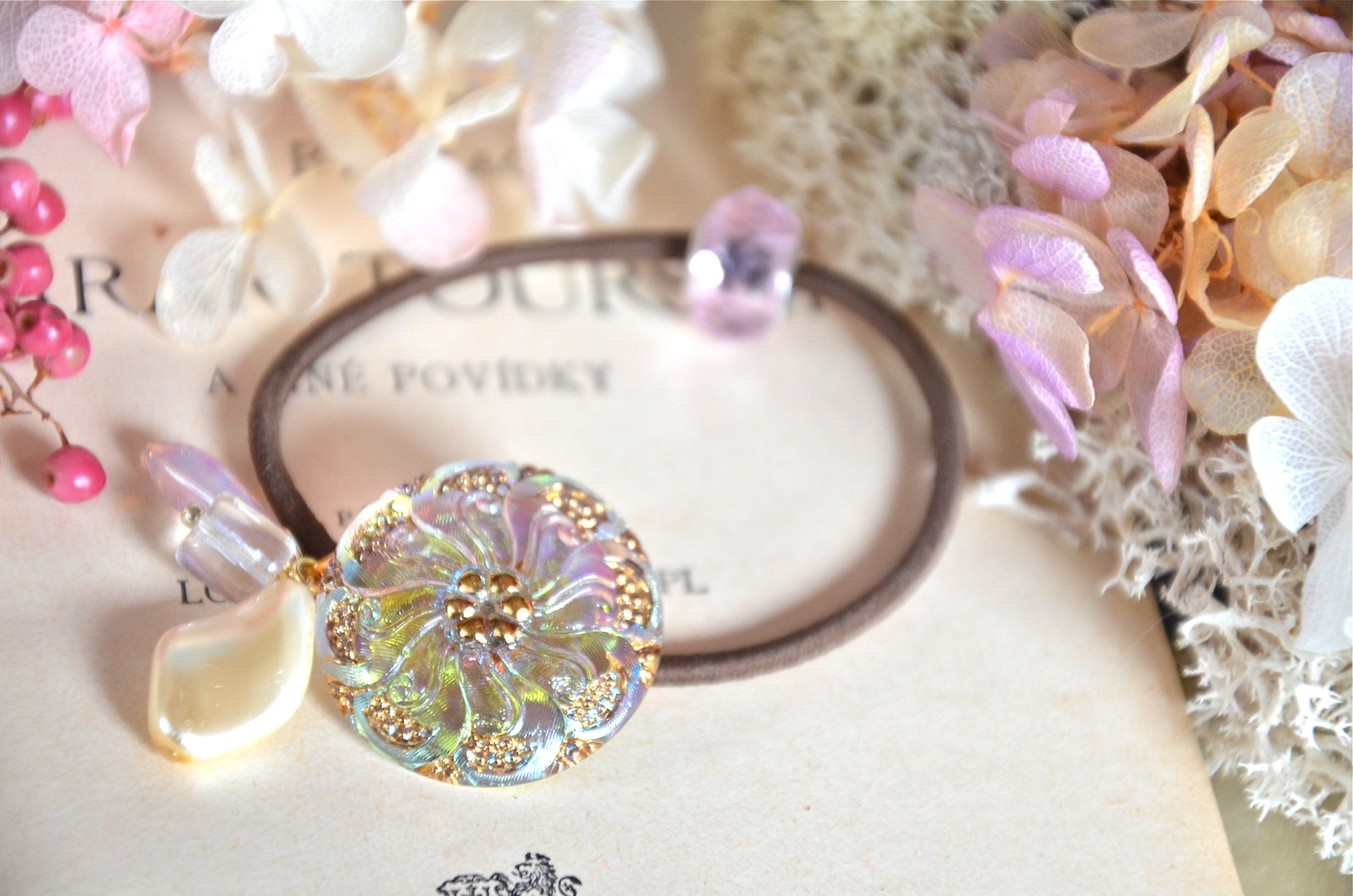 【東雲牡丹】 髪留め チェコガラスボタン