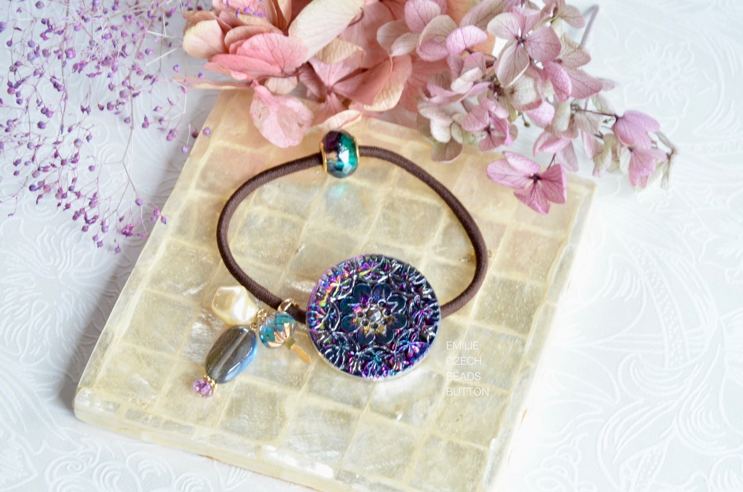 【ロゼタ】~葵~ 髪留め チェコガラスボタン ラブラドライト
